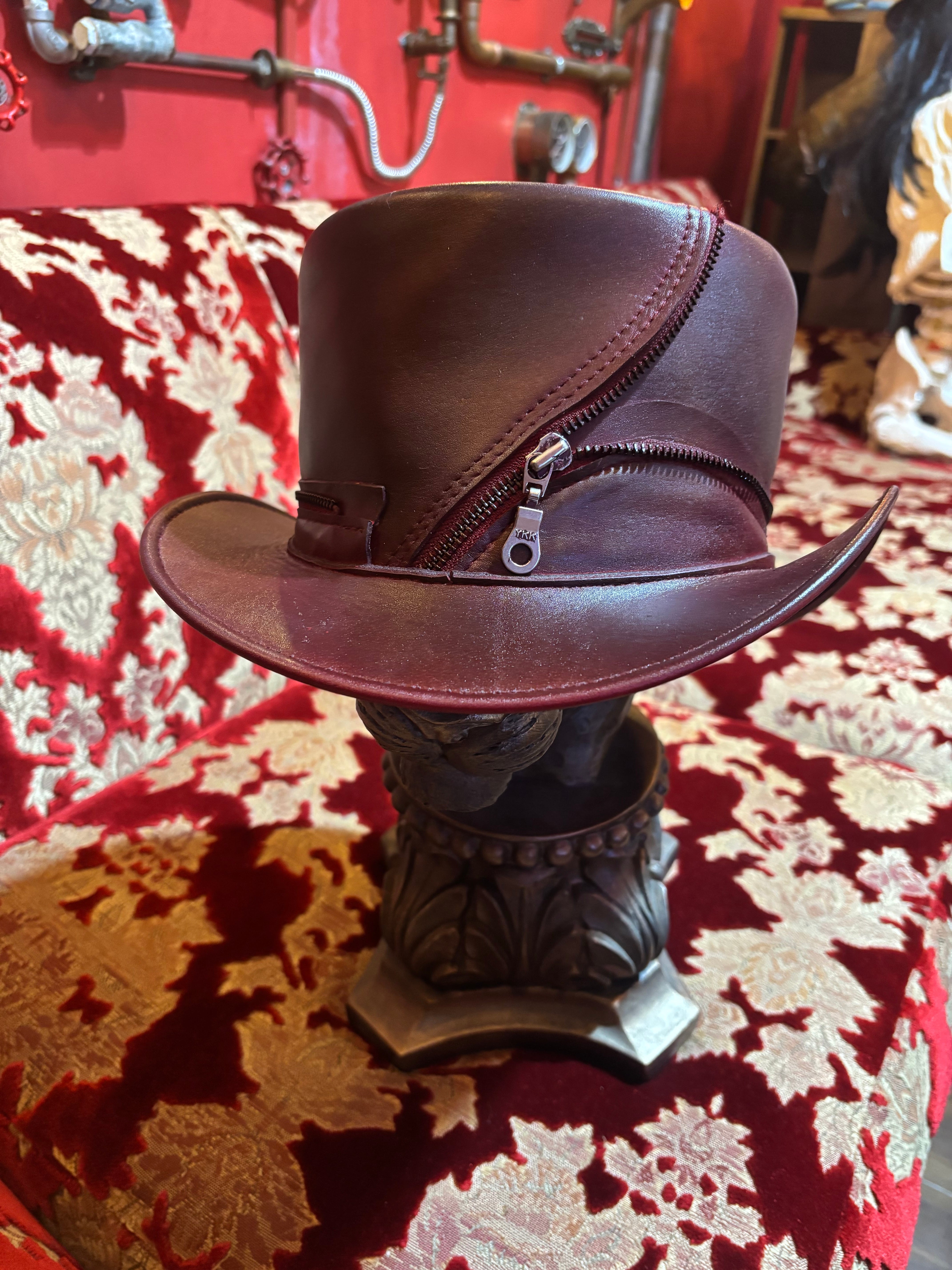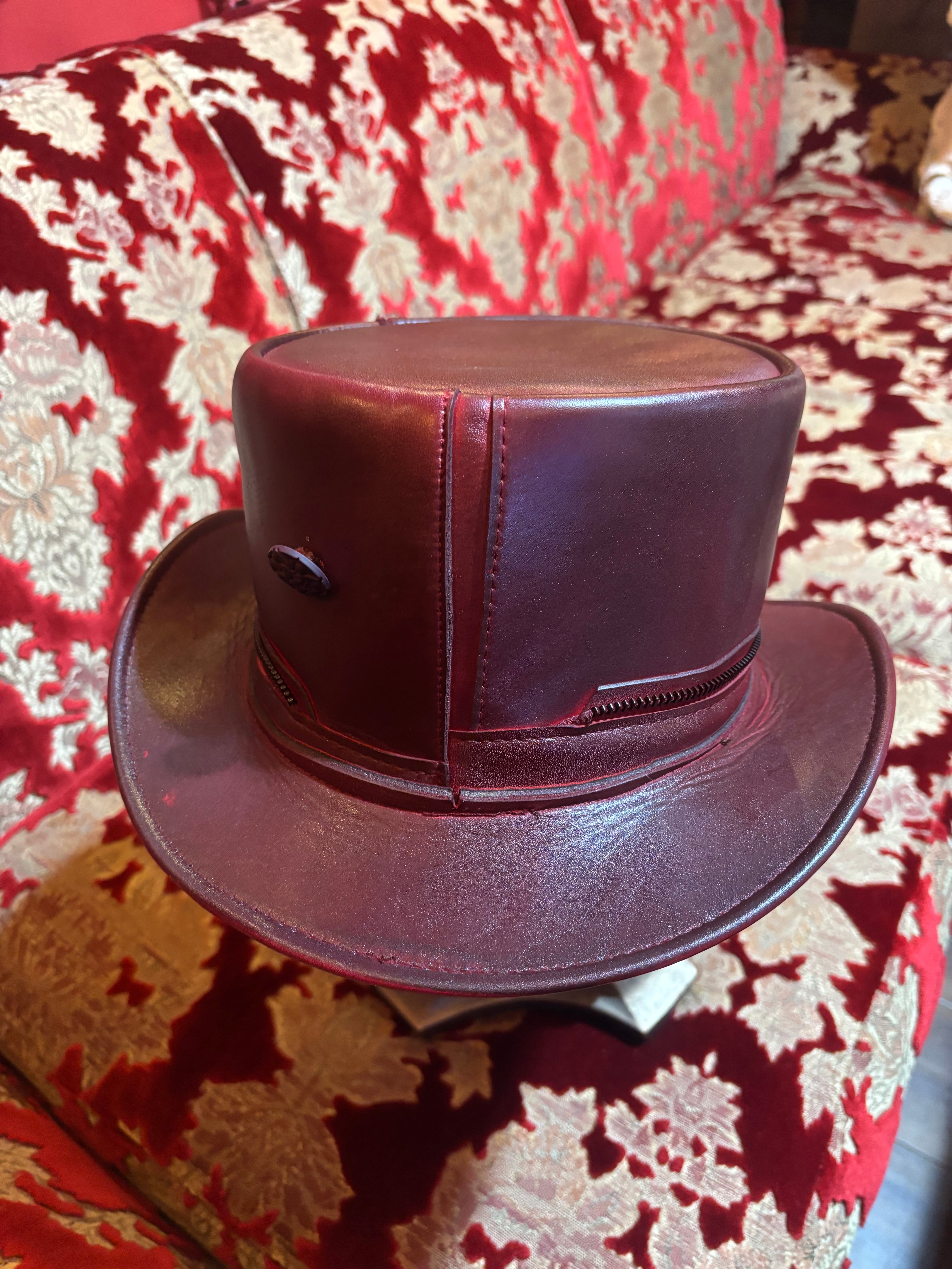 渋いバーガンディのオイルレザー光沢が堪らないレザートップハット