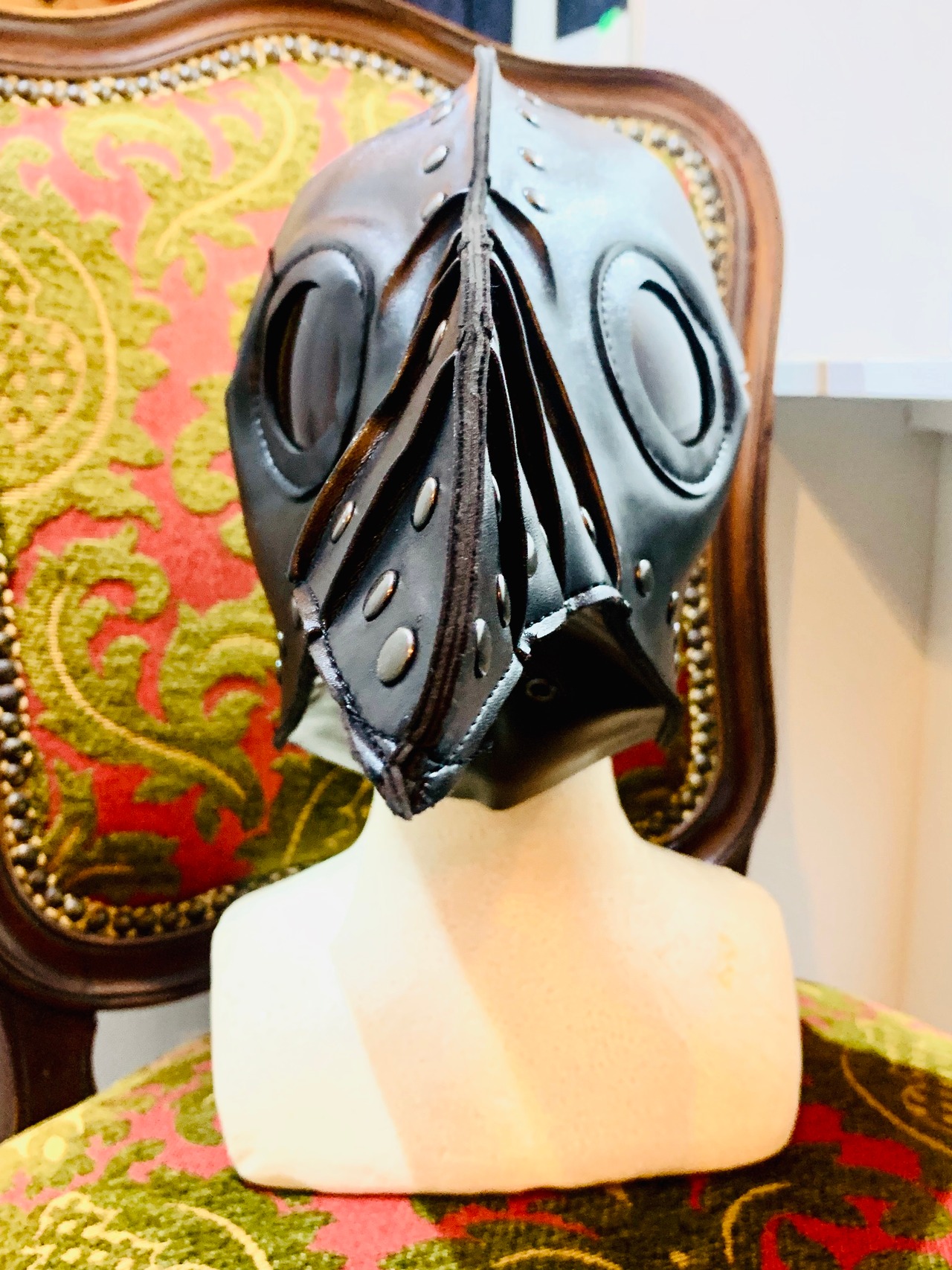The plague mask was used during those dark times to keep the wearer safe against getting the plague by keeping the “bad air” out. They would stuff the nose part with herbs and flowers and smelling salts to ward off the disease while dealing with the sick. Many of these doctors were quacks who did more harm than good. Or just used these to help with body disposal.