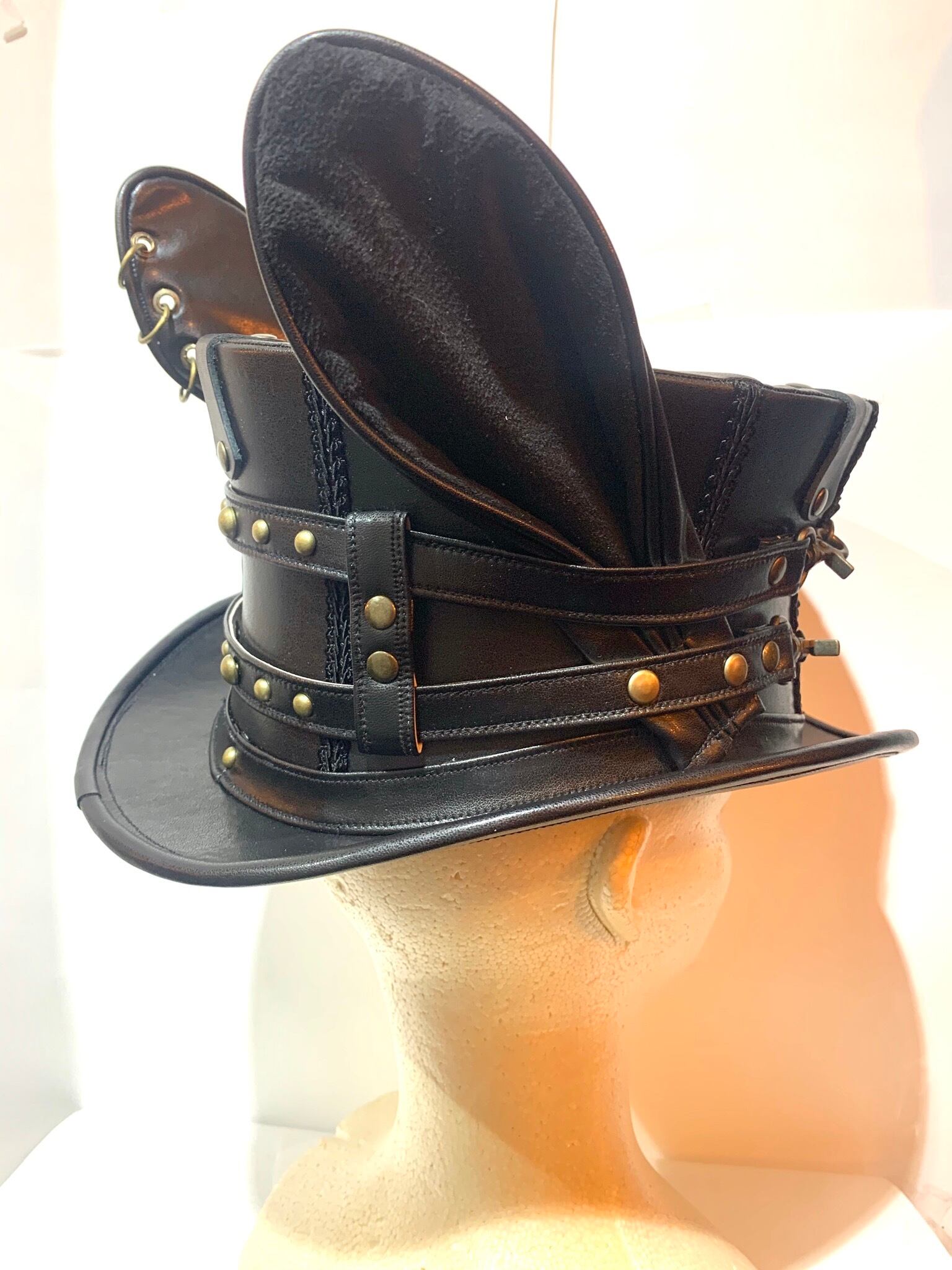 レザー張りのコルセットレーシングスタイルのトップハット。