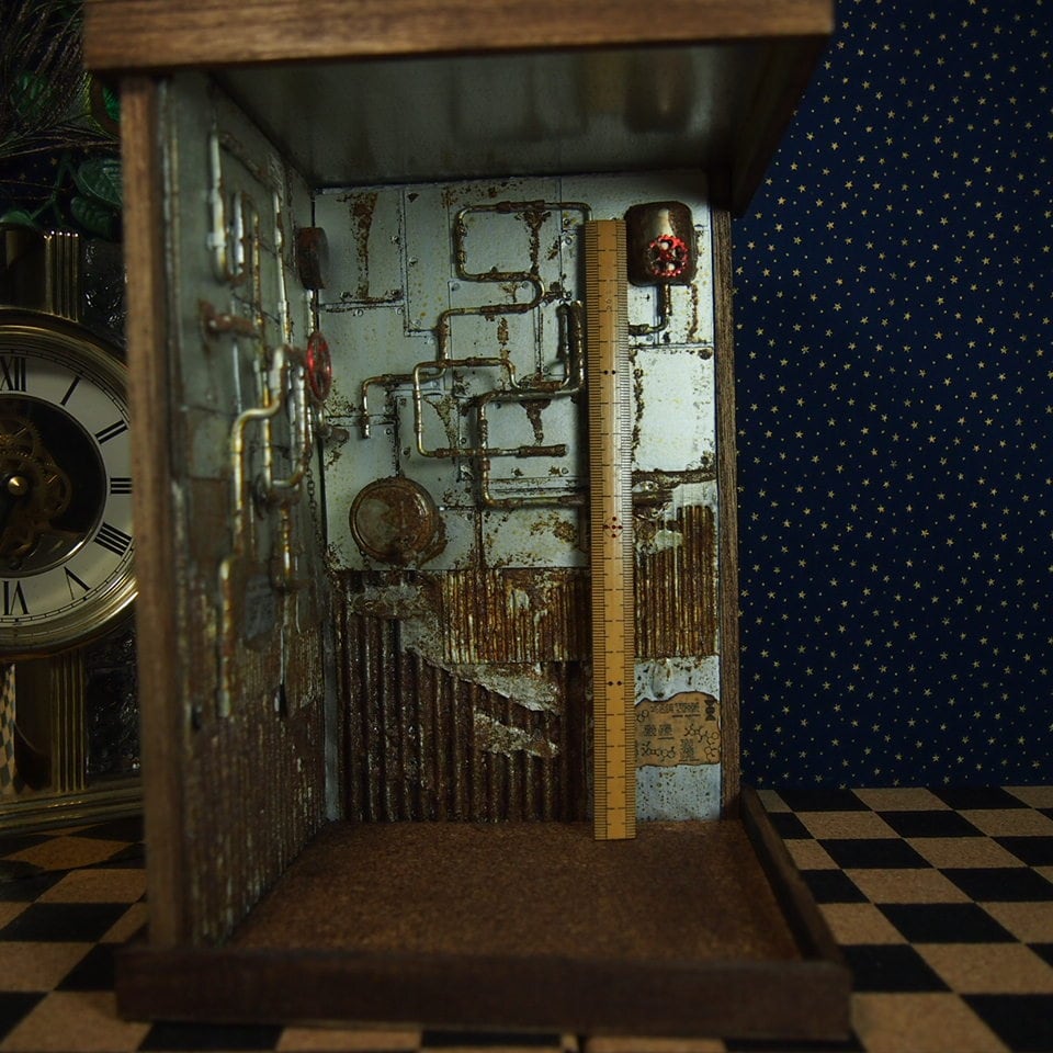 謎の配管やバルブが残る廃工場のドールハウス。1/12サイズのドールやフィギュアに…